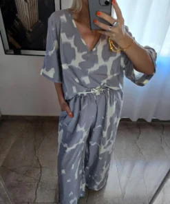 Maxi Conjunto Diseño Print, modal con spandex elastizado sublimado, maxi remera y maxi palazzo.