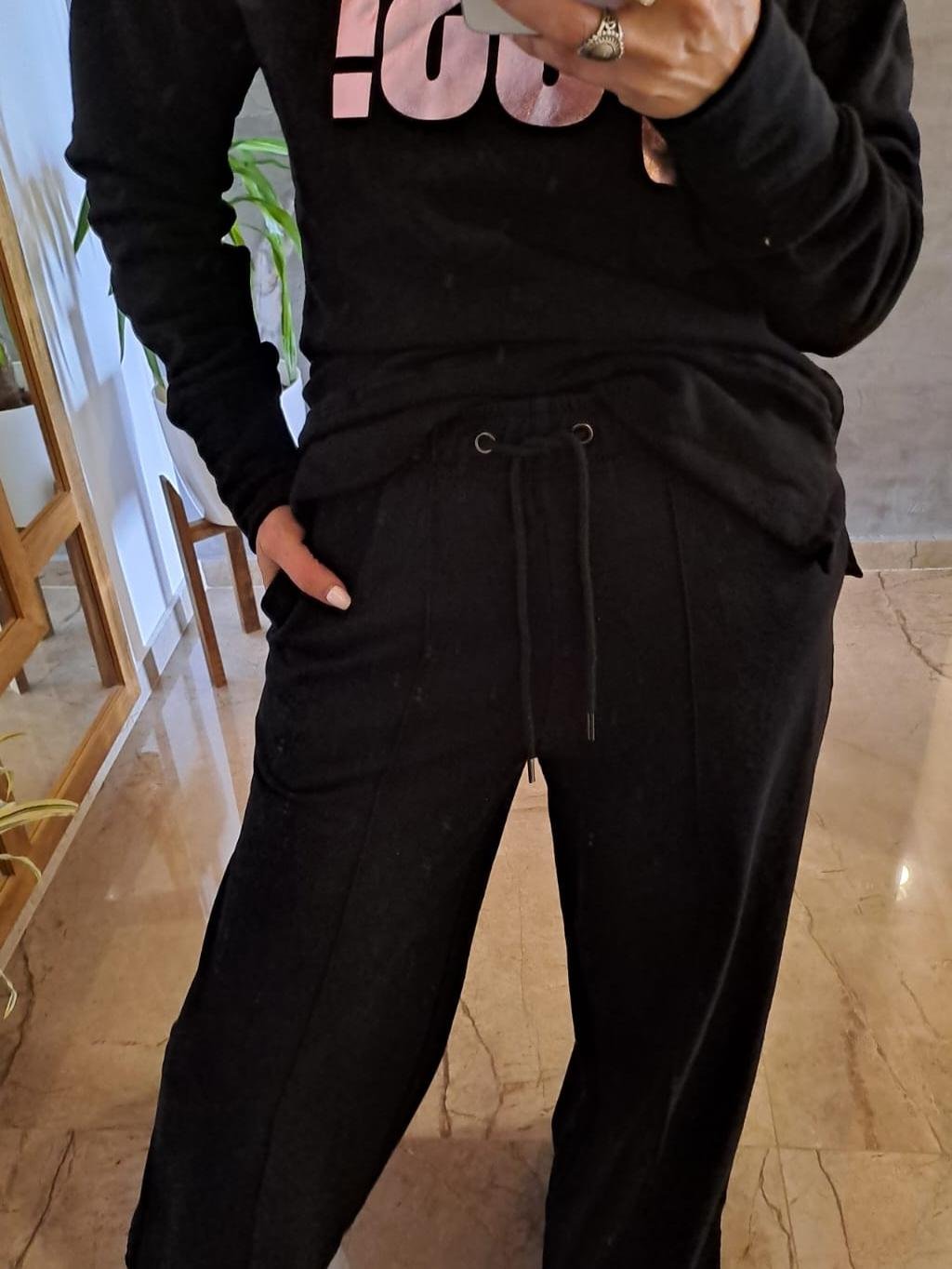 Buzo algodón rustico, elastizado con estampa metalizada.