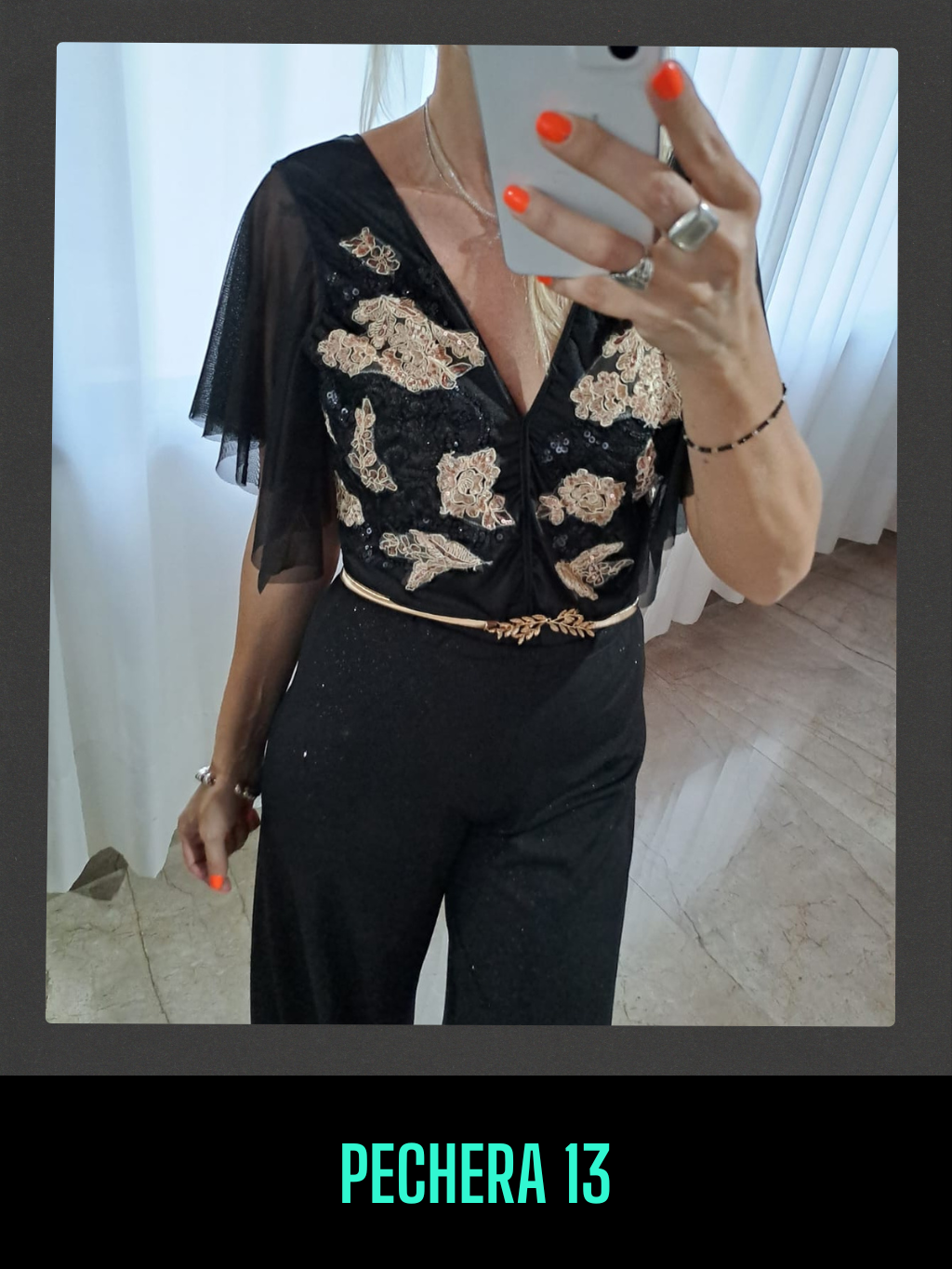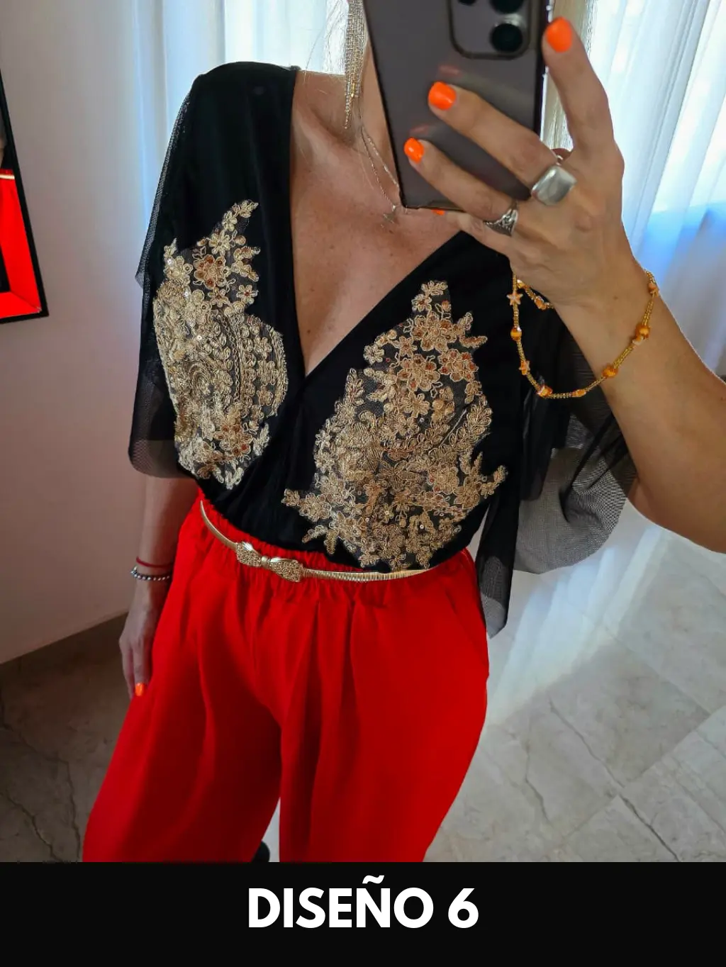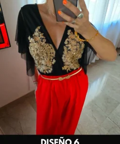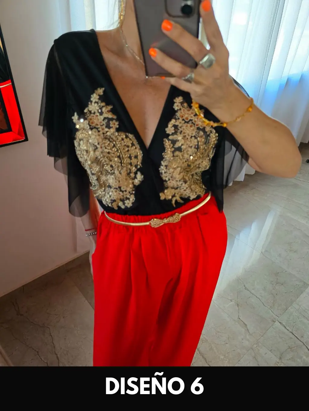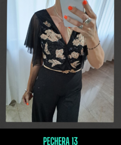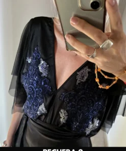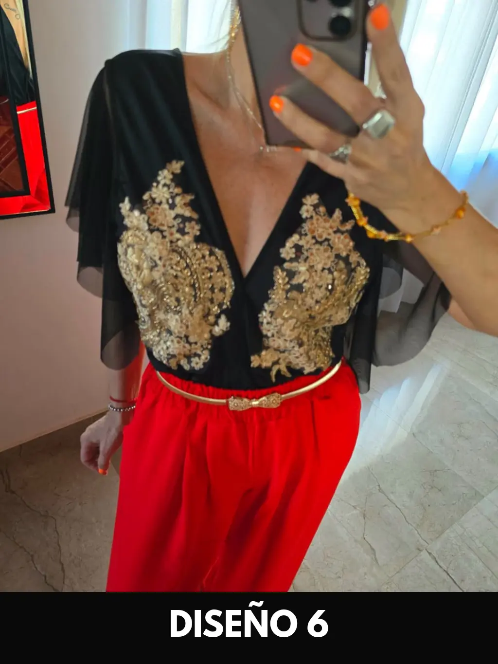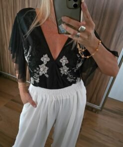 Body Diseño Bordado en Lycra de vestir, mangas tull escote frente y espalda.