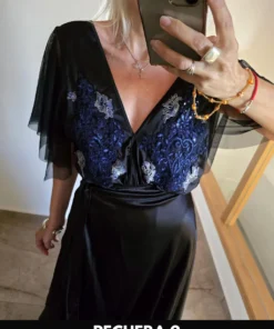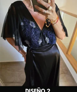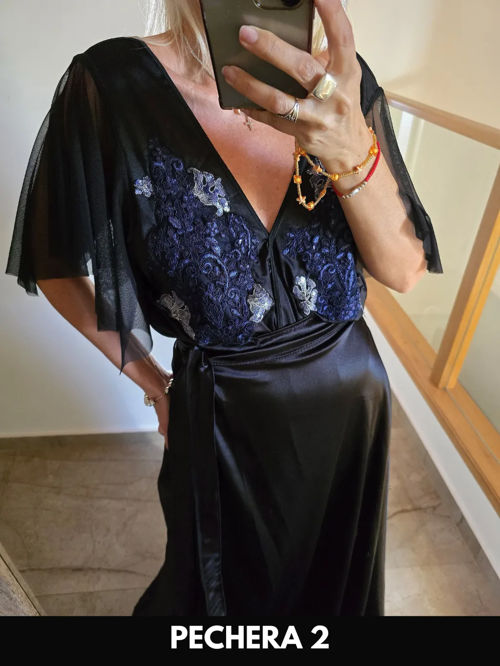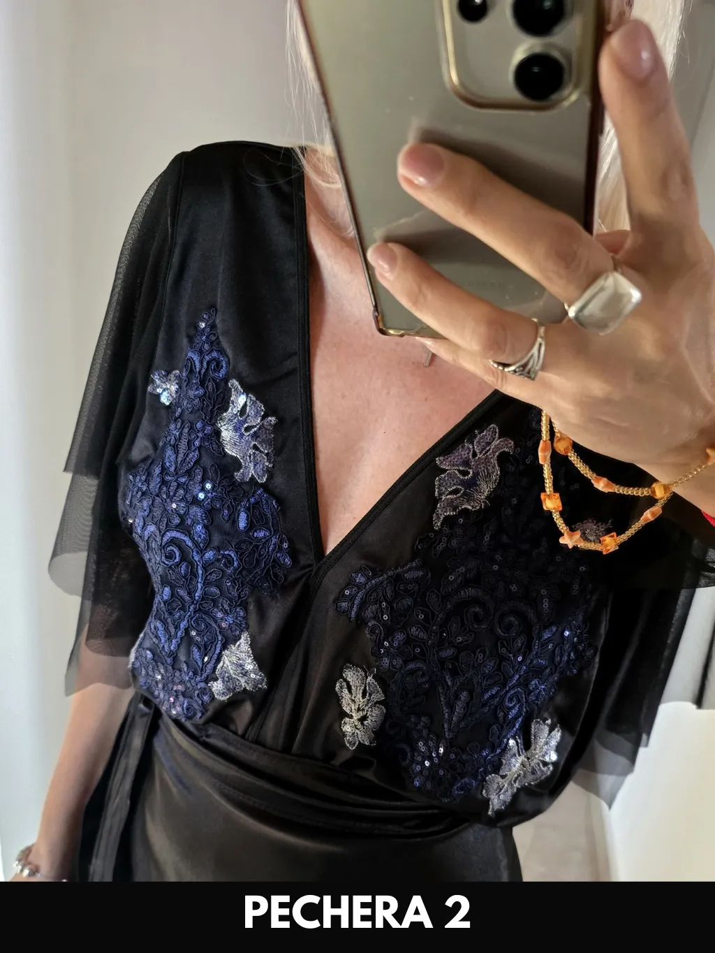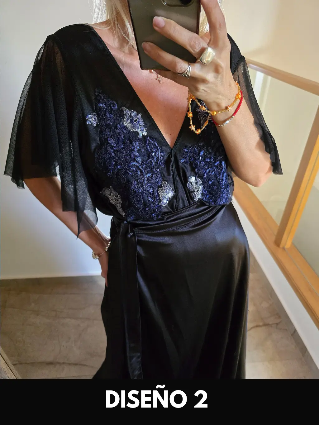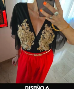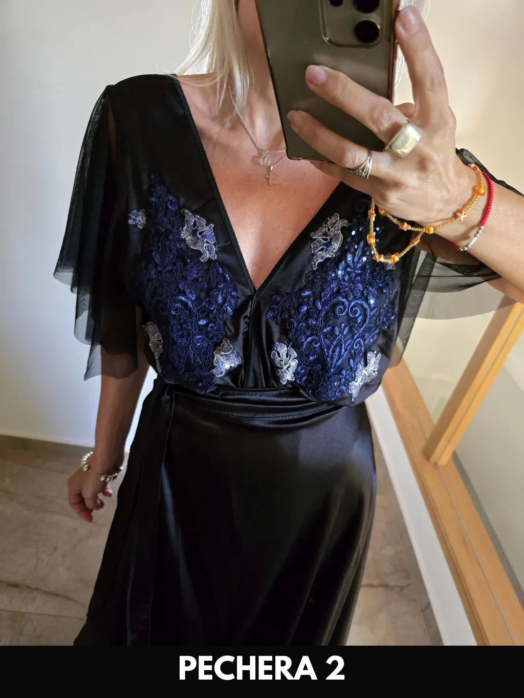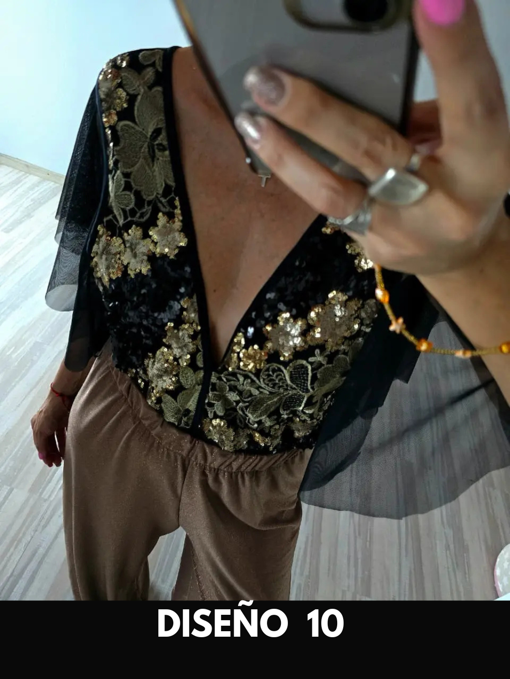 Body Diseño Bordado en Lycra de vestir, mangas tull escote frente y espalda.