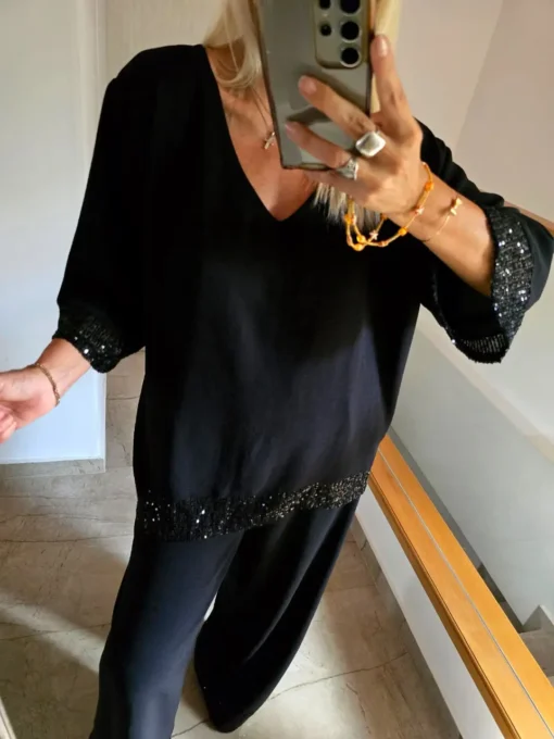 Conjunto Shari Tela Cey, con detalles en Palliette