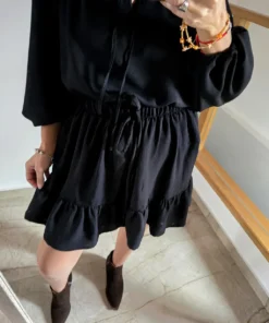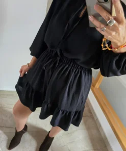 Falda Flor, tela cey con vuelos amplios, con elástico en cintura.
