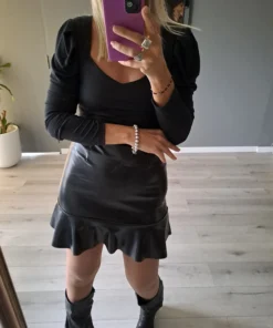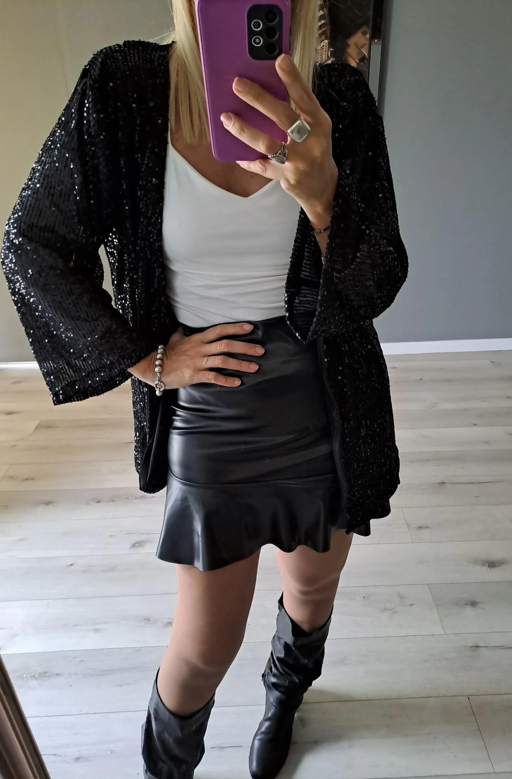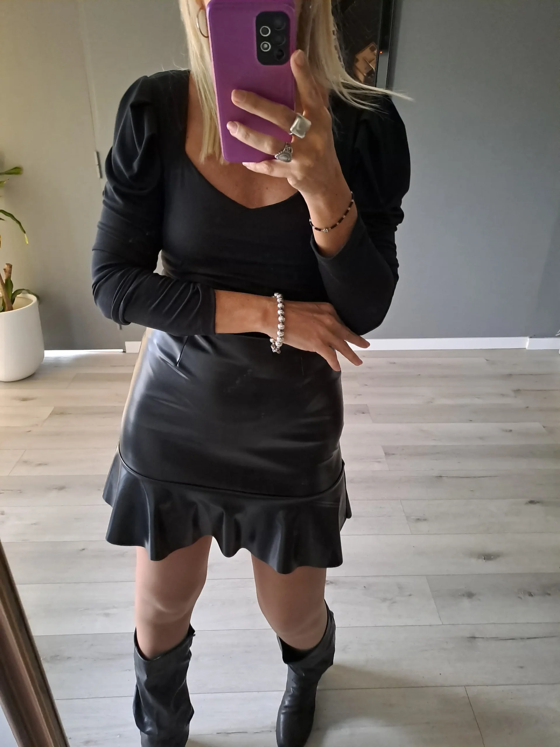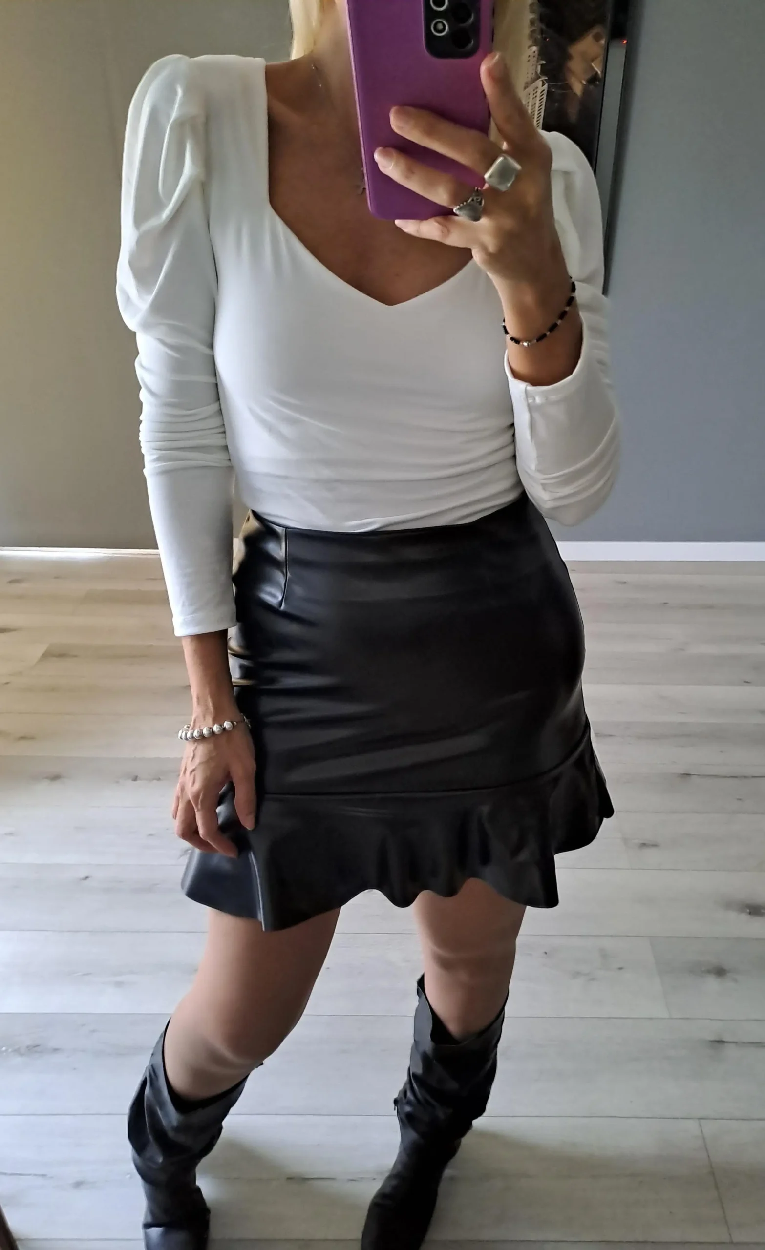 Falda Cuerina Elastizada con vuelos y cierre metalizado