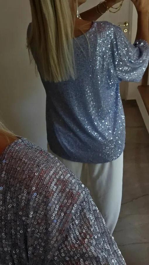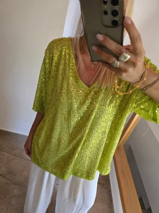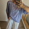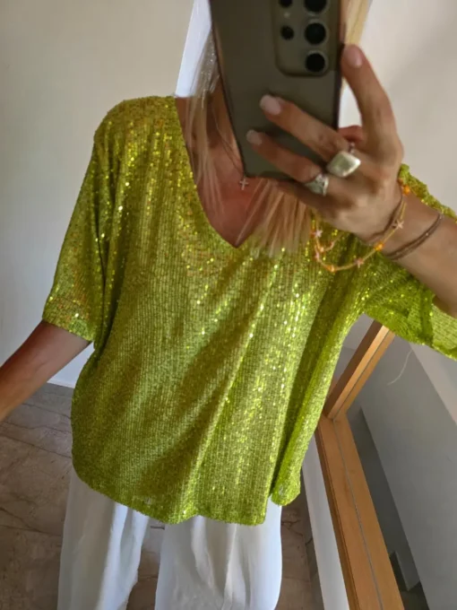 Maxi Remera Diseño Palliette elastizado con forreria escote reversible, usalo como quieras.