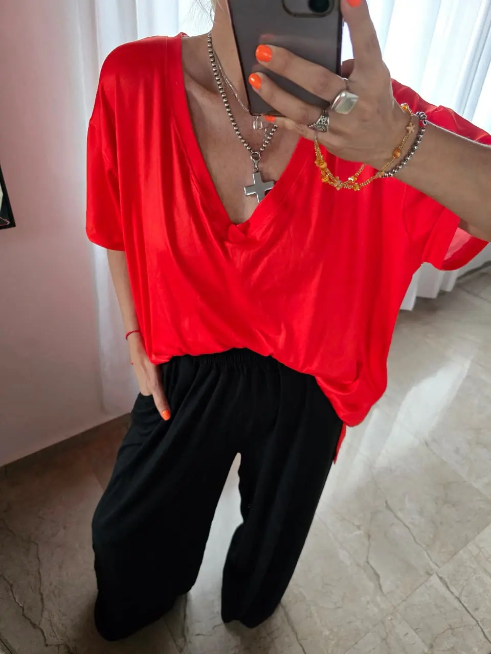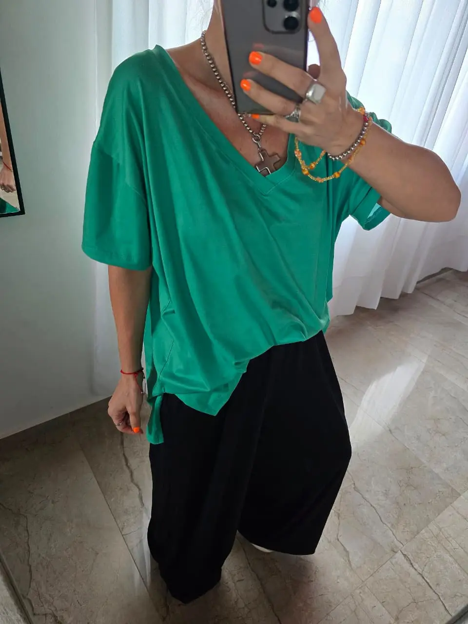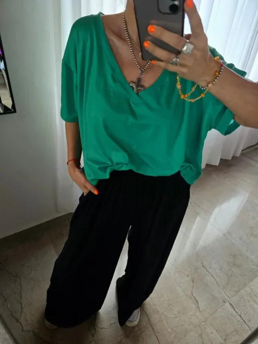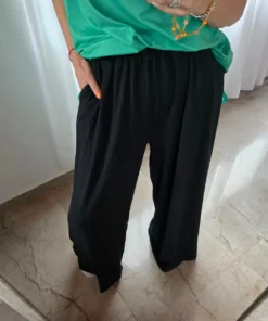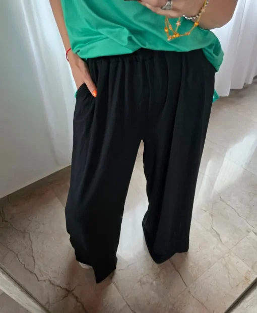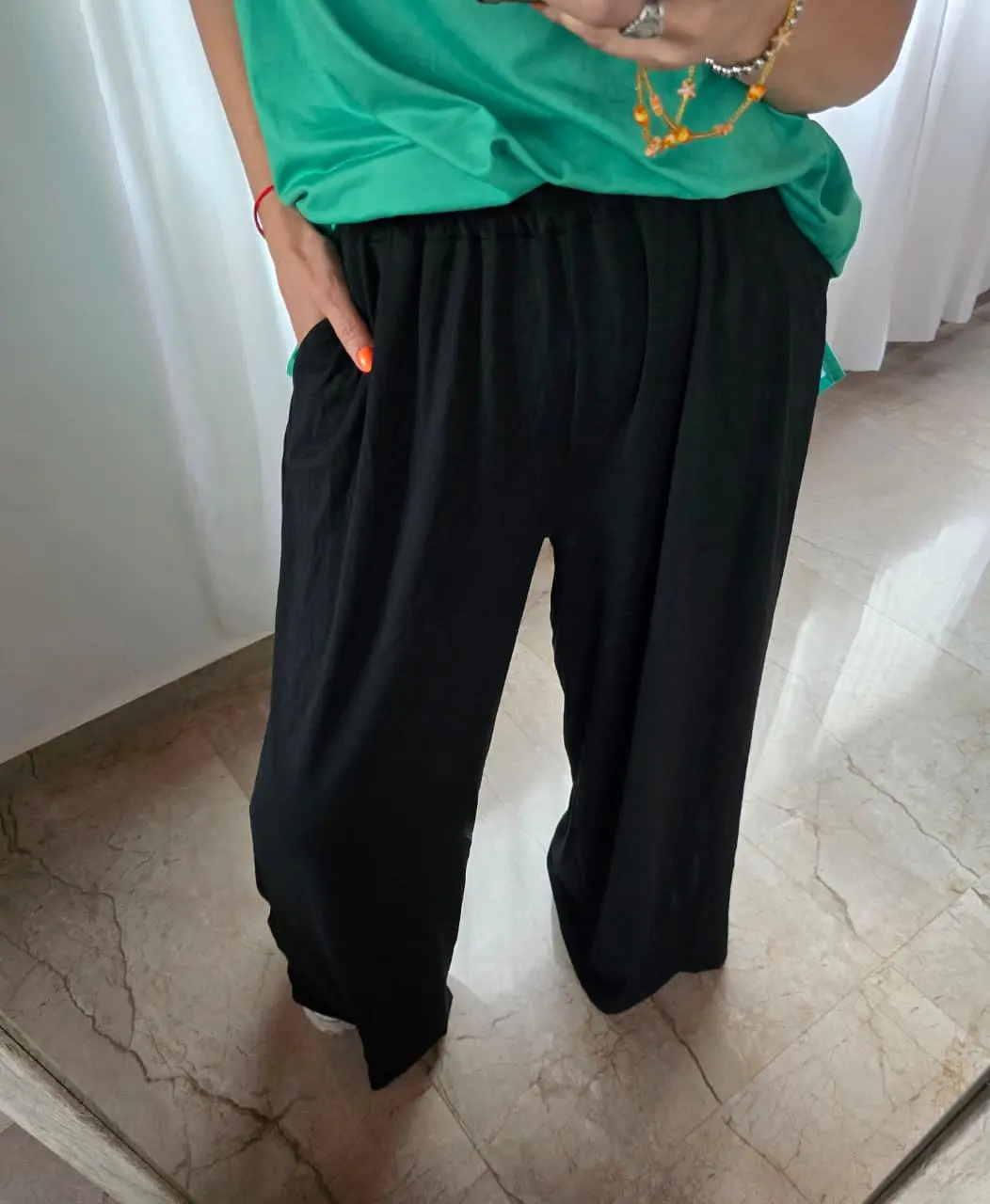 Palazzo algodón con spandex, con bolsillos y elástico en cintura