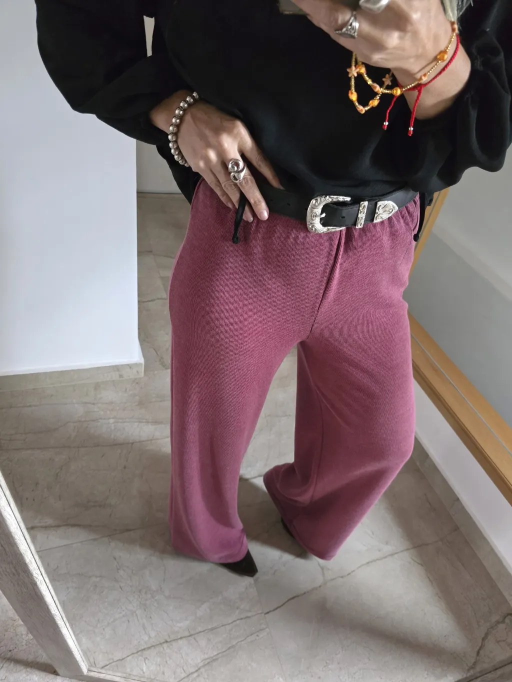 Pantalón Marga, morley vintage con frisa, elástico en cintura, súper elastizado.
