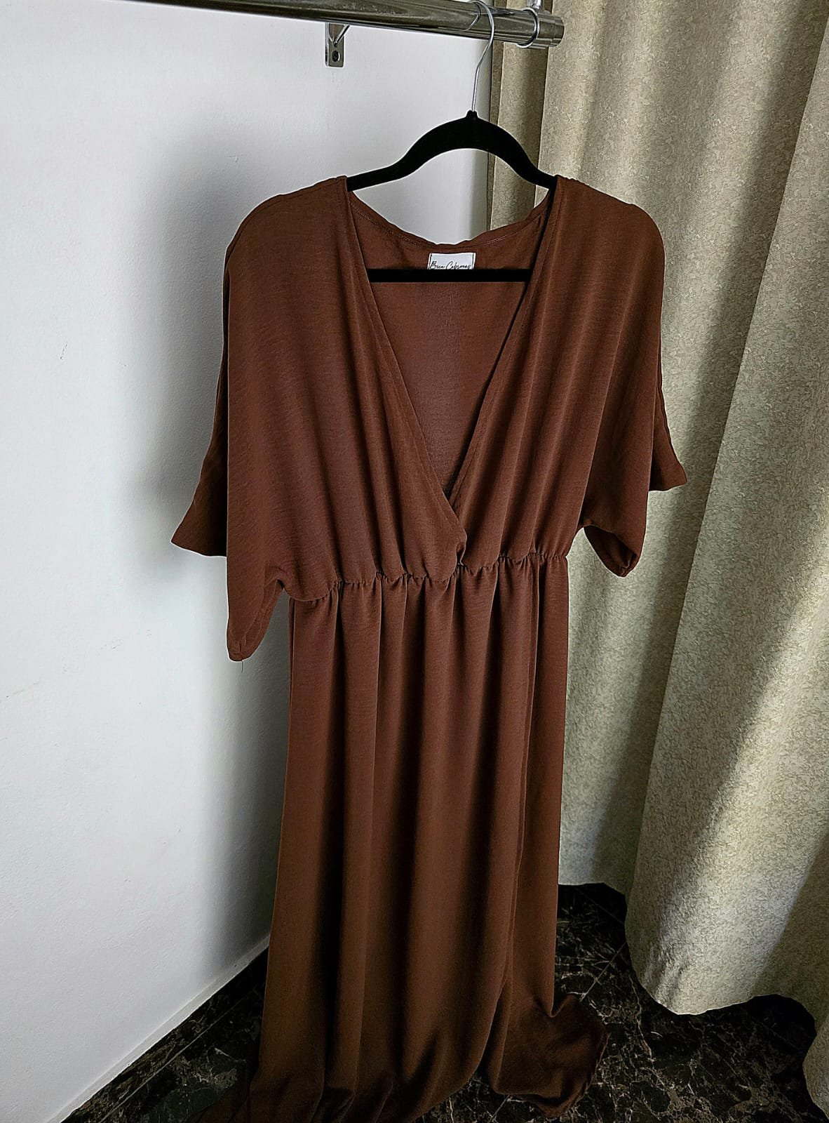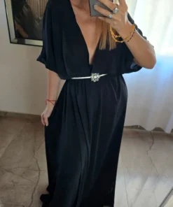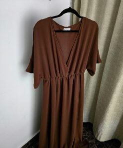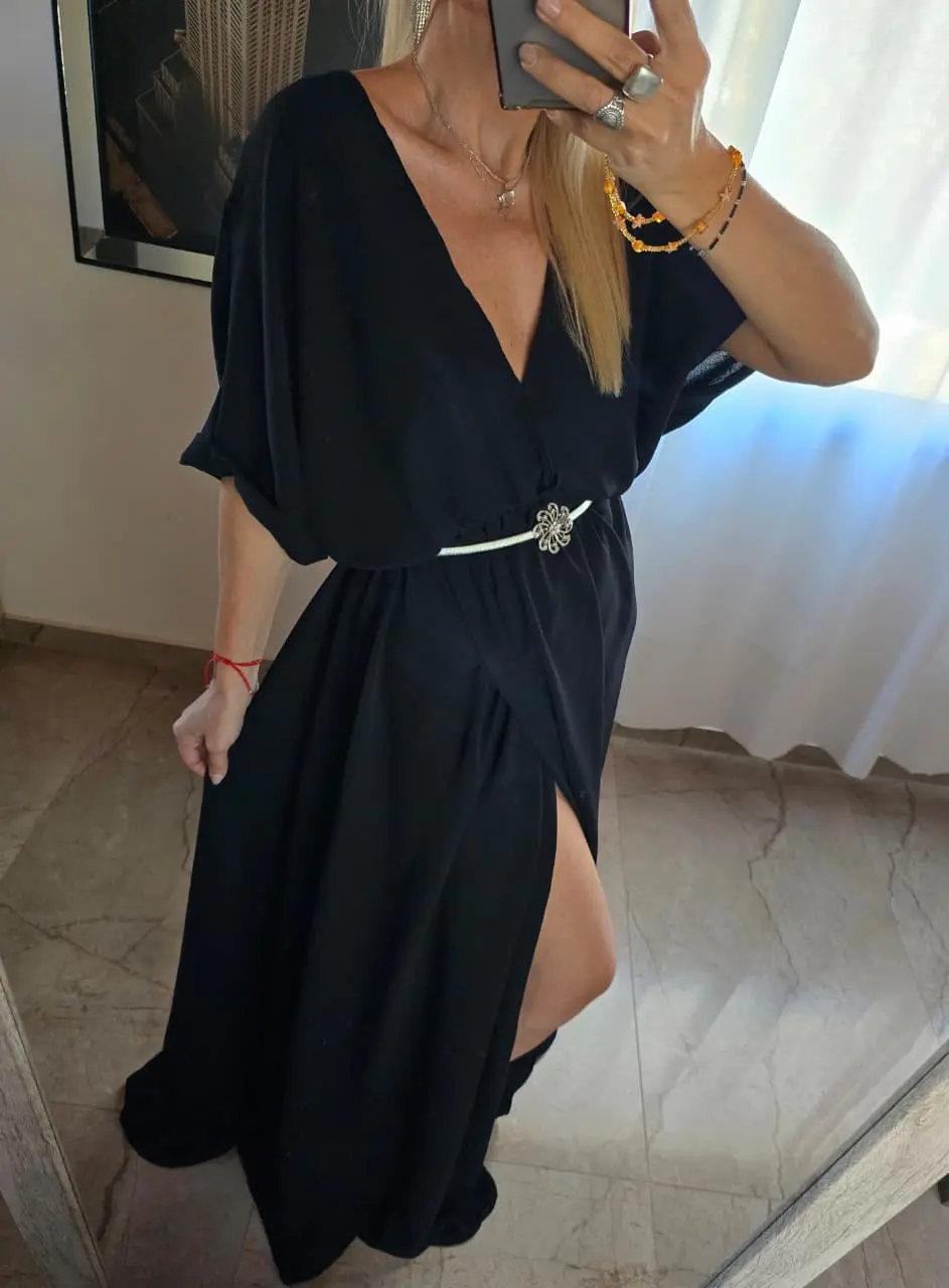 - Elástico bajo busto, falda cruzada y tajo frente