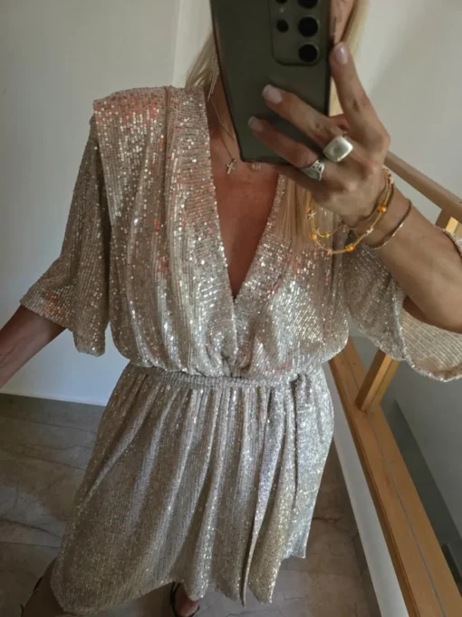 Vestido Diseño Dubaí Palliette Elastizado con forrería