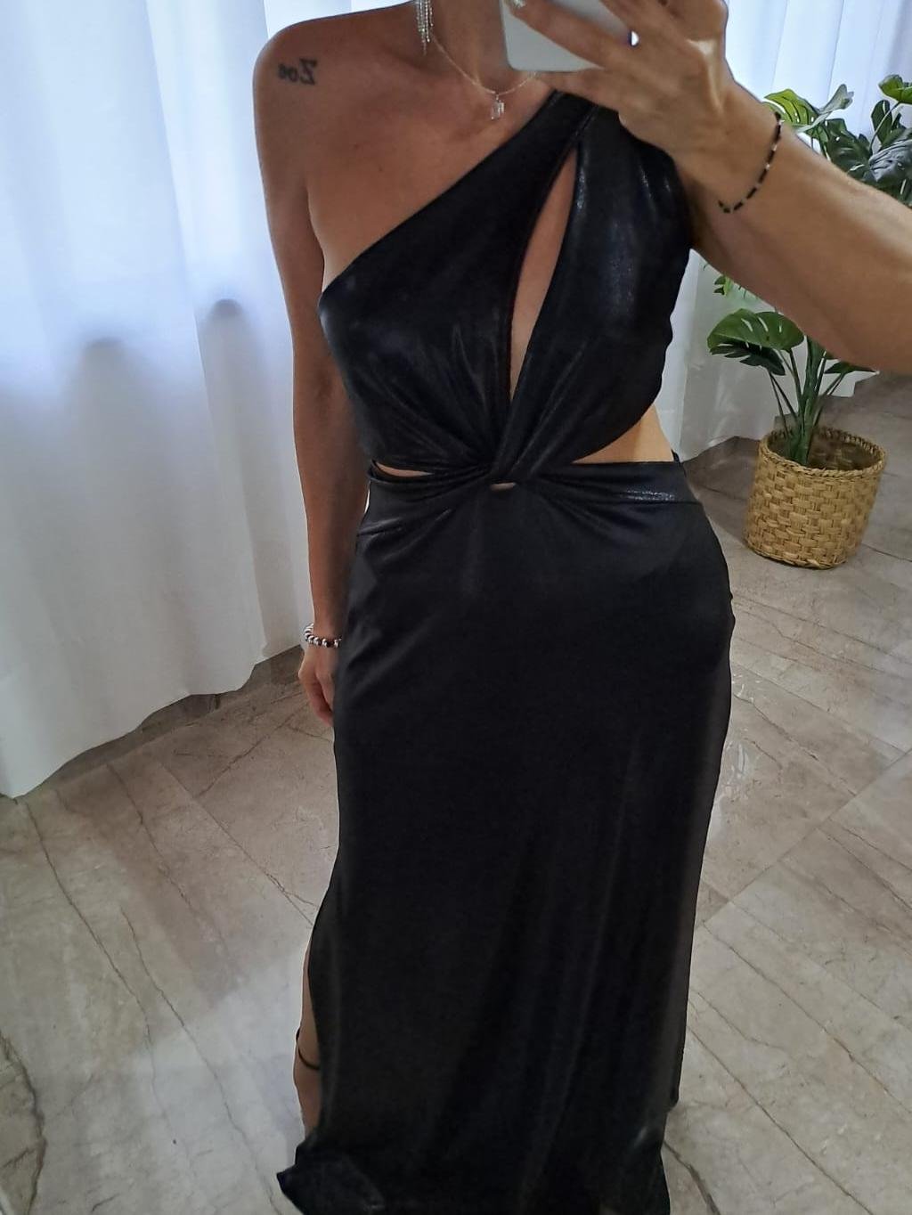 Vestido Elastizado Lycra Foil un hombro con recortes frente y espalda.