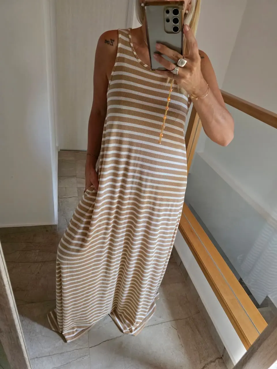 Vestido algodón tejido, con spandex y bolsillos.